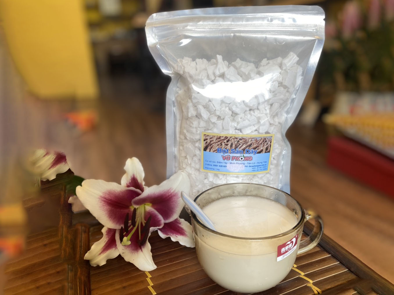 Bột sắn dây là sản phẩm được chiết xuất từ củ sắn dây, một loại cây có rễ phát triển thành những củ to và dài. Sản phẩm này là một loại tinh bột thơm ngon và giàu dưỡng chất. Bột sắn dây thường có màu trắng tinh, mịn, và có tác dụng thanh nhiệt, giải độc. Nó cũng có khả năng hỗ trợ điều trị một số loại bệnh khác nhau.
